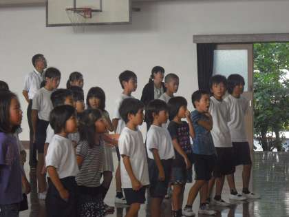 10日の児童集会では前期の最後になるかもしれませんが,各委員長が連絡をしっかりしました。少し慣れてきているように思います。自分の言葉で話している人もいました。この集会では,運動会に向けて校歌も歌いました。