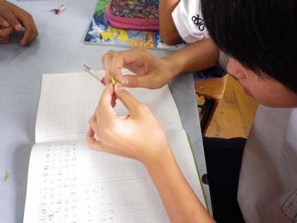 花粉の働きについて学習しています。今日は,咲き終わった花の花びらとがくをとって観察をしました。