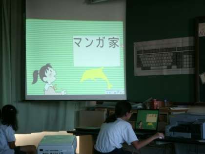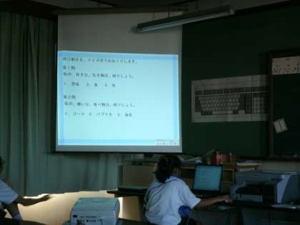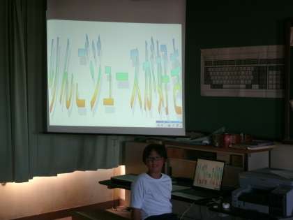 コンピュータークラブで,夏休み前から作っていた自己紹介のプレゼンテーションをしました。絵や写真を貼り付けたり,音楽を流したり,スライドの切替えにアニメーションを使ったりとプレゼンテーションソフトの様々な機能を使って作ることができました。