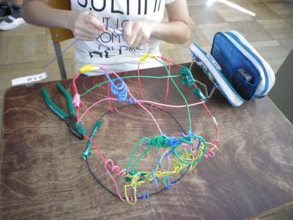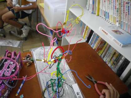 今日の図工では「タワーをたてよう」の仕上げをしました。ペンチの使い方も,慣れてきましたね。個性あふれる作品が出来上がりました。