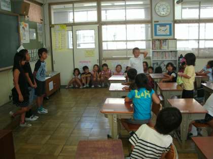 5時間目に1年生の教室に行って二の丸北小学校の行事について,紹介しました。最初のあいさつから,進行すべてを3年生が役割を分担して行いました。1年生の質問にもその場の判断で答えることができました。