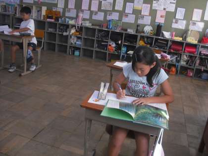 絵にする場面を思いうかべて,ドラゴンや森の様子をあらかじめ絵本を参考に描いています。どこに何を描くかなど,想像力を働かせる時間でした。
