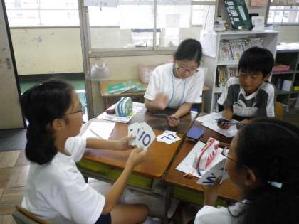今日は,アルファベットを使って点つなぎをした後,カードゲームをしました。カードがなくなったら勝ちなので,みんな熱中していました。
