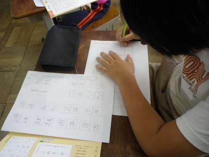 書写の時間には,文字の組み立てに気をつけて丁寧に書く学習をしました。ひらがなも美しく書けるように、お手本で確認しながら50音を書きました。