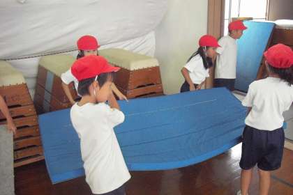 マットやとびばこを安全に持つ持ち方も学習しました。