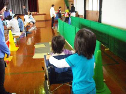 車いす体験は社会福祉協議会の方々にお世話になりました。段差や坂のあるところを進む難しさを感じることができました。