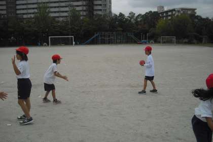 ルールを知った後は,運動場に出て,実際にボールを触りました。