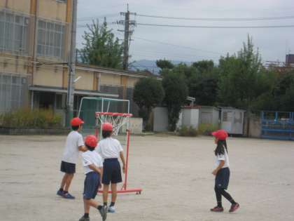 今週より体育の時間には,パスゲームの学習を進めています。月曜日には,ルールの説明を聞いた後,同じチームの人にパスをしてシュートをする練習をしました。去年も子どもたちは,パスゲームの学習をしています。同じチームの人が受け取りやすいボールの投げ方を子どもたちは考えていました。