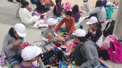 心配された雨も降らず,広々とした芝生の上でおいしく食べることができました。