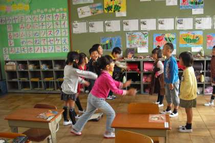 言葉の掛け合いを楽しみながら,声に出して,お話を読みました。