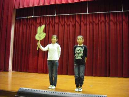 明日の 準備のあと 集会委員会が 幕間の出し物の 練習をしました。