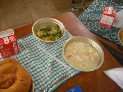 寒い日でしたので,暖かいシチューがとてもおいしかったです。みんなでせっせと準備をしてたっぷりいただきました。