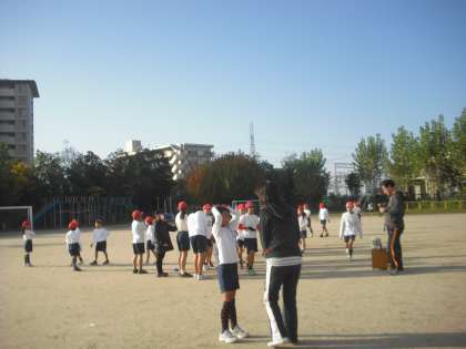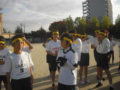 今日が試合という日の朝のランチャンは,しっかり鉢巻をしめて9周.1800mを計りました。その後にたすきをつなぐ練習です。少し気が引き締まる思いでした。