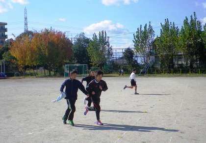 今日は遊び係の「けいどろ」があり、広い運動場を走り回っていました。みんな元気です。
