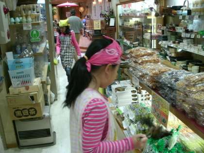 大手筋商店街の油長茶舗さんへお店体験に行って来ました。商品にはたきをかけたり,喫茶部の食器を洗ったり,小鉢の準備をしたりといった仕事をさせていただきました。子ども達は,「はたきをかけるところがないくらいきれいで,いつもきれいにされていることが分かった」というような感想を持ってしました。