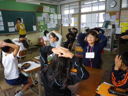 今日の授業ではまず、絵の一部を見て何かを当てるクイズをしました。そして,それぞれの教科を英語では、どう表現するかについて学習しました。最後はキーワードゲームで盛り上がりました。