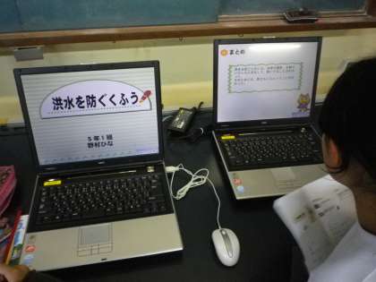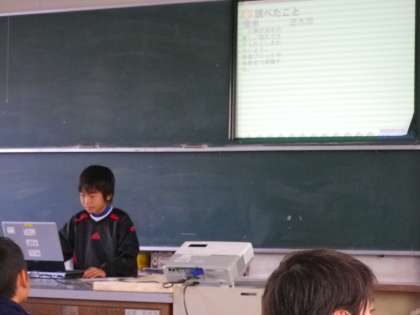 今日は洪水を防ぐ工夫について調べてきたことを発表しました。パワーポイントを使って分かりやすく分かったことを伝えることが出来ました。