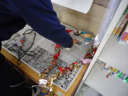 図工は,リース作りをしました。今日の1時間で,完成した人もいました。来週中には完成しそうです。