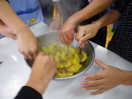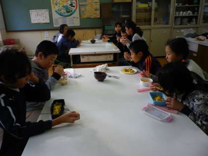6年生といっしょに、さつまいもでスイートポテトを作りました。どのグループもおいしそうに食べていました。また、おうちでも作ってみてくださいね。