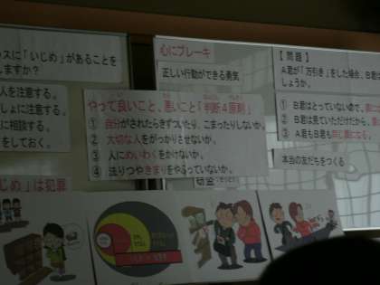 心にブレーキをかけなければならない4原則についてまなびました。みんなの感想のなかでは,「本当の友達をつくって助けあわなければならない。」と感じた人が何人かいました。悪い誘いをするのは本当の友達とはいえないという思いからだと感じました。