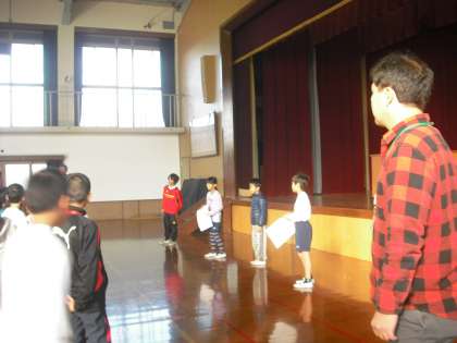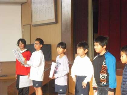 朝会で人権標語について発表しました。各学年ごとに人権について真剣に考えている様子がよく分かりました。相手の気持ちを考えて行動することが大切ですね。