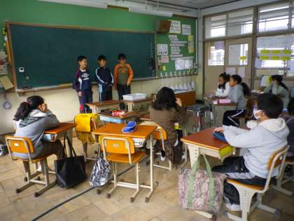 委員会があった次の日は,委員会ごとに決まったことなどを発表しています。4年生から続いている取組です。