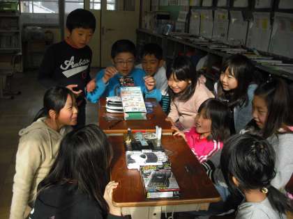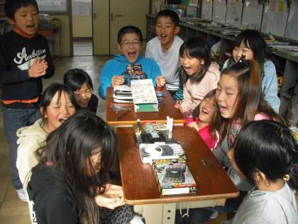 教室で面白い遊びを思いついて,みんなで盛り上がっていました。