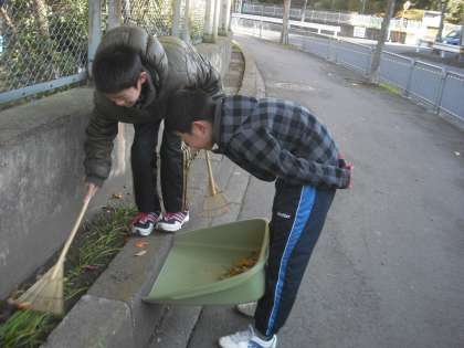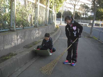大縄集会のあと引き続いて落ち葉掃除をしました。他の学年もしているので葉はかたまっては落ちていませんでした。散らばっている落ち葉を集めているとまた風が吹いて吹き飛ばすのが嫌でした。風に負けずに一生懸命集めました。
