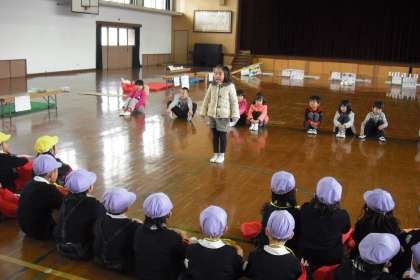 「どきどきする〜がんばろう!」とお互いに声をかけながらさつき幼稚園のみなさんを迎えました。