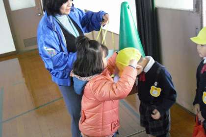 1人1人の首に,カードをかけてあげました。はじめの言葉も大きな声で,伝えようと頑張ったので,さつき幼稚園のみなさんも真剣に聞いてくれました。