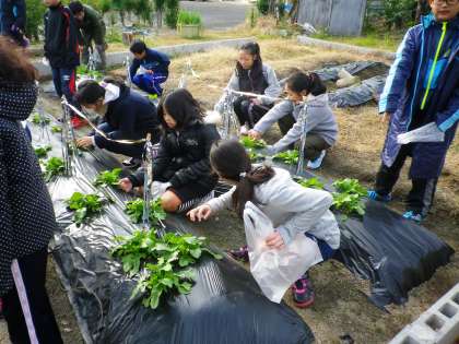 今日は農園に行って間引きをしました。間引きをした葉っぱは,大切に持ち帰りました。大根の葉っぱは,栄養がいっぱいあるので美味しく食べてください。寒さに負けず,残した苗が大きく育ってくれますように・・・