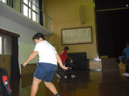 2014年の初めての学校での活動は,ランチャンから始まりました。あいにくの雨でしたが,6年生は全員がそろい,しっかり元気に体操をしてくれました。
