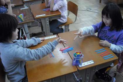 ぼうゲームをしました。自分が何本棒をとったかを数えました。