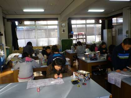 今日は,電磁石の性質を使って車を作りました。集中して取り組んでいました。