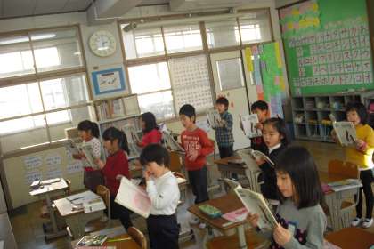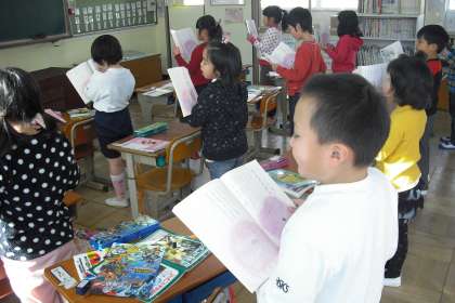 「てんとうむし」の詩を視写をしたり,読み方を工夫したりして,読む練習をしました。