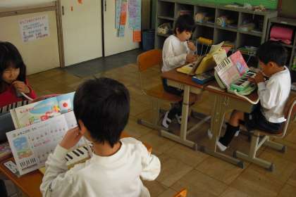 2つのパートに分かれて,前から練習している「よろこびのうた」を弾きました。