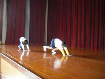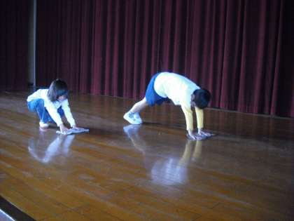 お昼休みに,チャレンジ活動で落ち葉はきをしたあと,