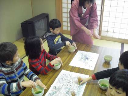 一通りお茶会の作法を習った後は,お菓子をいただき,抹茶の立て方を体験しました。緊張したけど抹茶がおいしかったいう感想を持った子が多かったようです。こうした体験を生かして伝統的な文化にも親しんで欲しいと思います。
