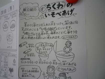 京北みそについて学びました。いつもよりも味わっていただきました。磯辺揚げも美味しかったです。