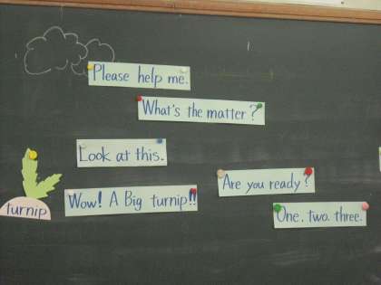 デリック先生との授業でした「大きなかぶ」のお話について色んな言い方やその意味について学びました。おじいさんがかぶをひっぱって・・・と次回は小さな劇をします。