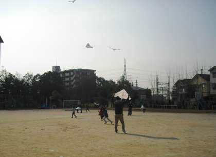 第2回ポプラサークルは「冬の遊び」。今年も,カイトを創り運動場であげました。
