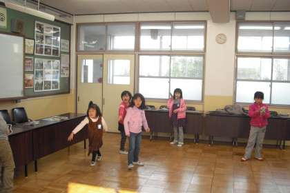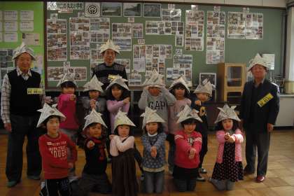 かぶとをかぶったり,紙飛行機をとばして遊んだりしました。