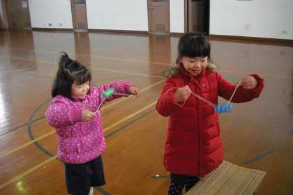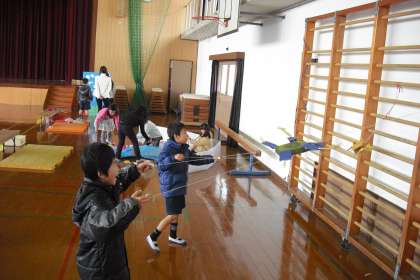 招待していただいて,2年生が作ったおもちゃで遊びました。
