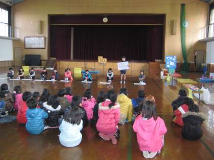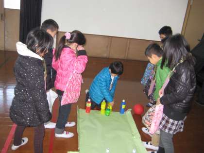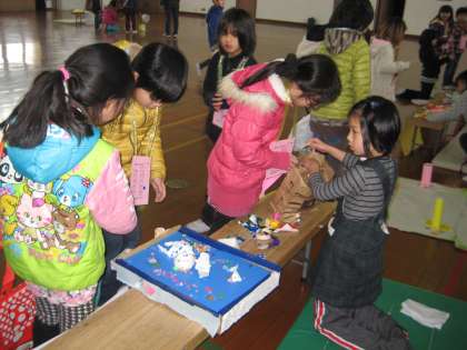 1月22日(水)には,向島二の丸小学校の2年生のみなさんに来て頂き,「おもちゃであそぼう」を行いました。はじめに,お店の紹介をしました。ポスターをもって,ルールなどの説明をしました。その後,一人で一つのお店を担当し,「おもちゃであそぼう」の会を進めました。来て頂いたみなさんに楽しんでもらえて,子どもたちは,大満足でした。