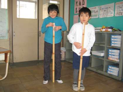 今日の算数の時間には,1mのものさしを使って学習しました。始めに,1mの高さは自分の体のどのあたりになるのか,調べました。次に教室の中で1mのものさしを使って,いろいろなもの、場所を測る学習を行いました。楽しみながら測る姿が見られました。