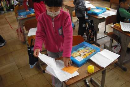 「身のまわりの物を大切のしよう」ということで,自分の机の中のものは大切の使えているかチェックをしたり,整理整頓をしたりしました。