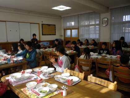 1年生と一緒に給食を食べました。かわいい1年生との楽しい時間でした。