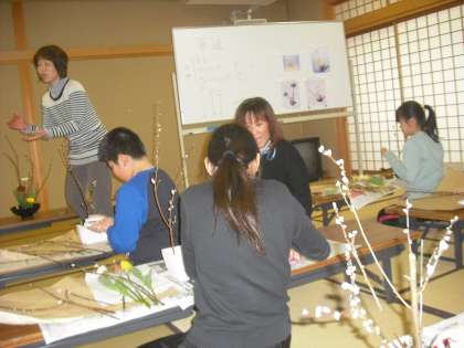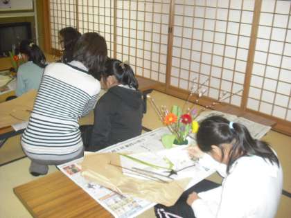 桃の花とガーベラとチュウリップを生けました。立体的に桃の花を組立てそこにガーベラを入れていきます。一生懸命考えながら,それぞれ個性豊かに生けました。とてもいい時間でした。