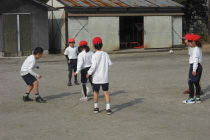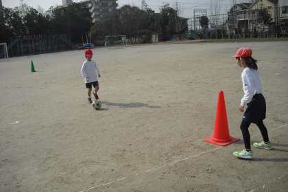初めての今回は,チームで円になってボールをけったり,ボールけりリレーをしたりしました。