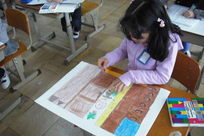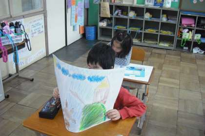 場面に合った絵をかきました。紙芝居の発表会が楽しみです。